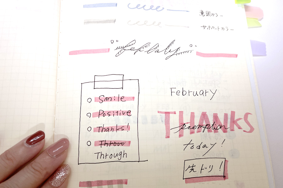 こちらは、ひと月書き終えて2月の振り返りと、次月に向けての決意表明みたいなページです。
