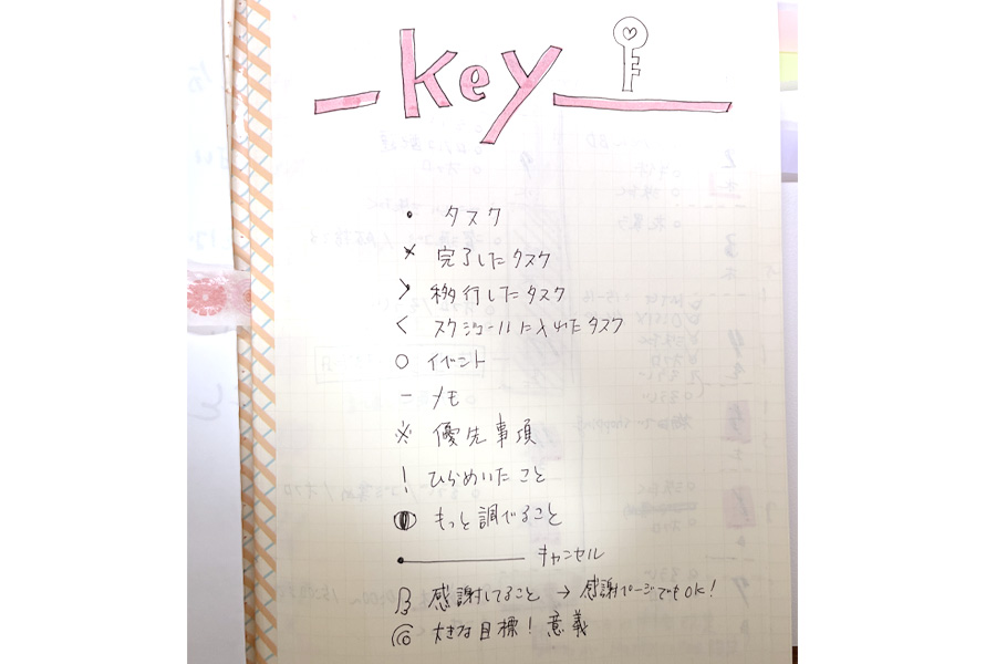 始めた当初は、バレットジャーナルの本を読まずに「とりあえずやってみよう」ということで、ネットに公開されているの可愛いセットアップ画像に憧れて真似してみたり、キーのリストも真面目に書いていました。